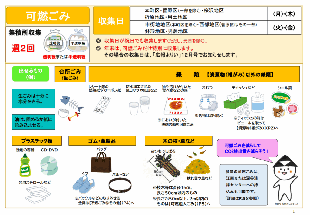 可燃粗大ごみ・有害ごみ・指定場所一覧 可燃ごみと不燃ごみの持ち込み 不燃ごみの変更点