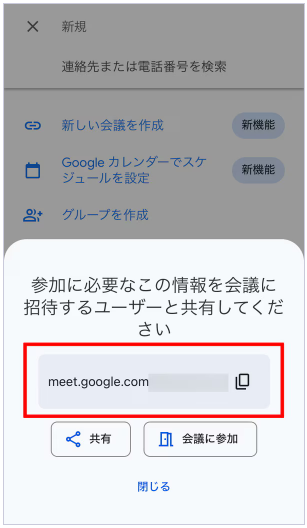 URLが発行されたら、表示されたURLをコピーして会議の参加者に配布してください。