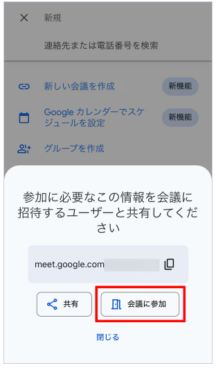 今すぐ会議をはじめるには、「会議に参加」をタップします。