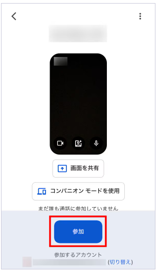次に入室画面が表示されるので、「参加」をタップしてください。