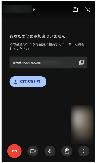 Google Meetの会議画面に遷移します。ほかに招待したい人がいる場合、表示されているURLをコピーして配布してください。