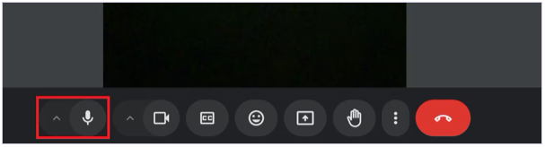 パソコンで使用できるマイクが複数ある場合は、マイクアイコンの横の「∧」のマークを選択すると、使用するマイクを選択できます。