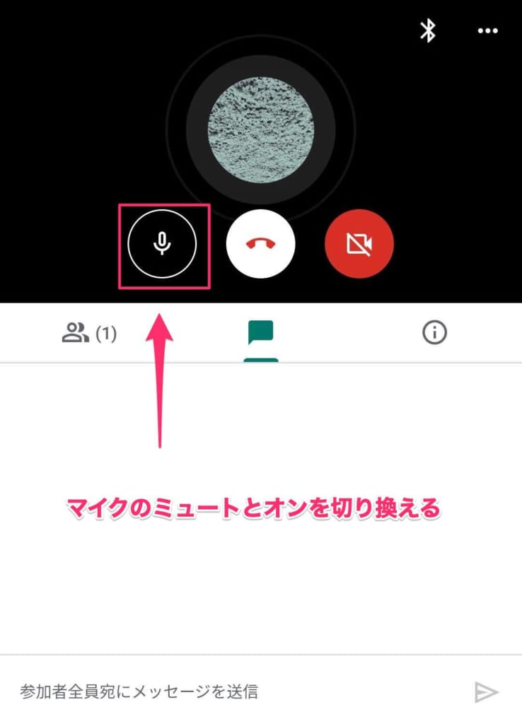 画面中央左のマイクマークをタップすると、オンとミュートの切り替えが可能です。