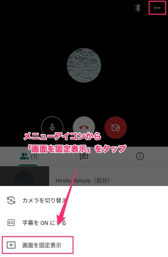 右上のメニューアイコンを開き、「画面を固定表示」をタップ。