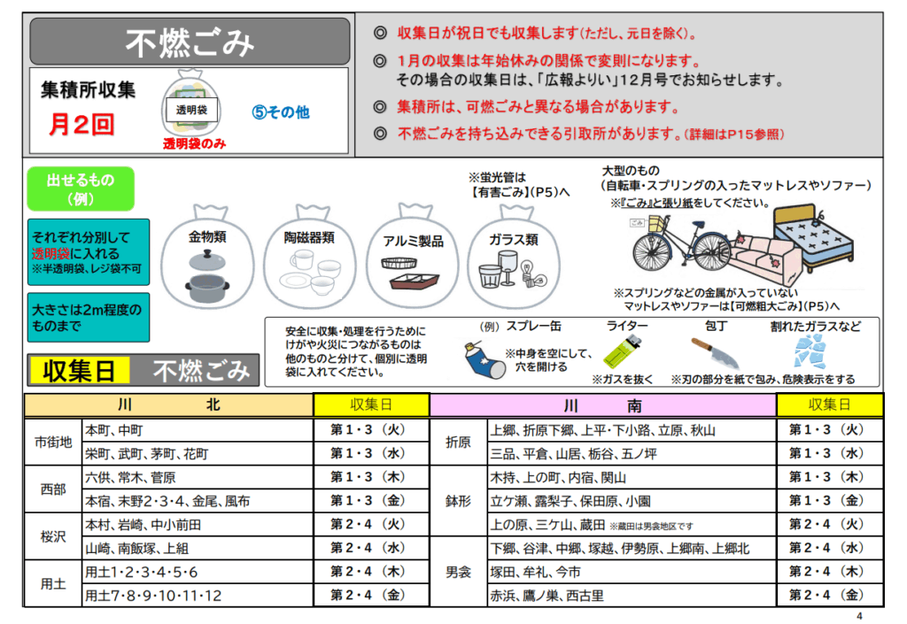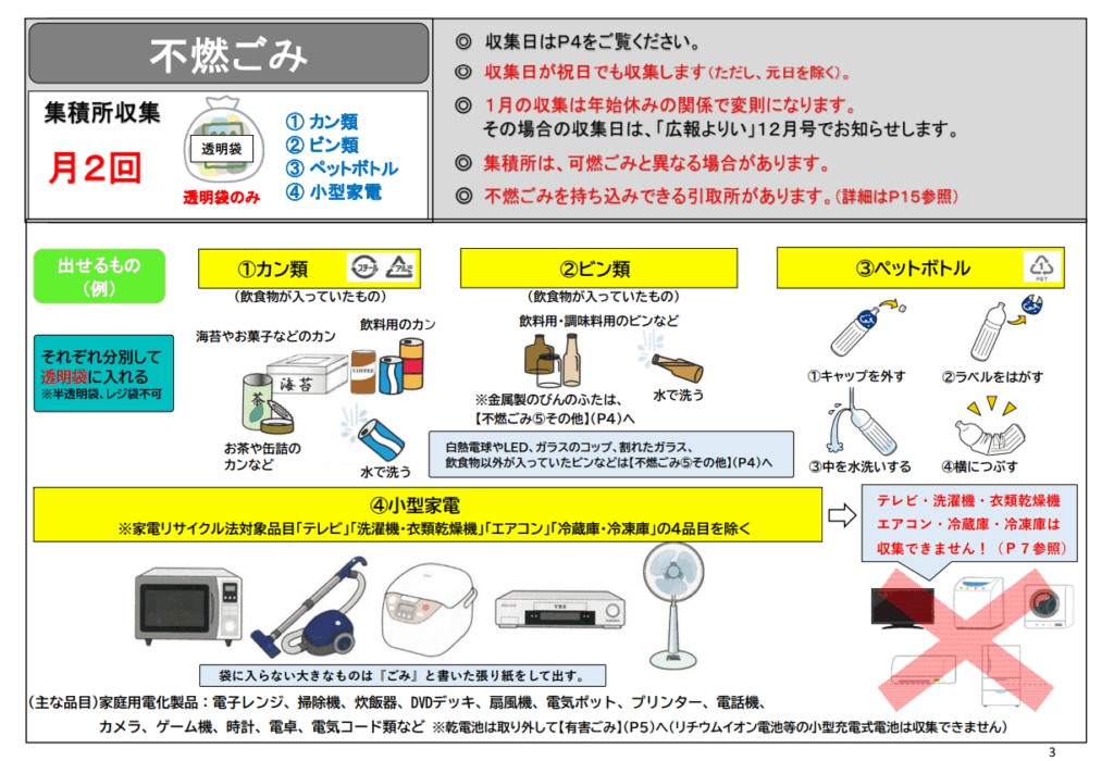 可燃粗大ごみ・有害ごみ・指定場所一覧 可燃ごみと不燃ごみの持ち込み 不燃ごみの変更点
