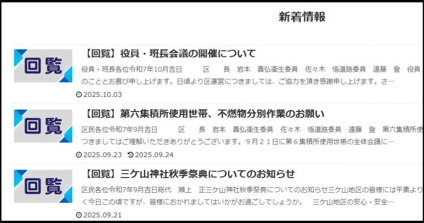 1)WEBサイトの「新着情報」の「回覧」にデジタル化された回覧記事が掲載されます。